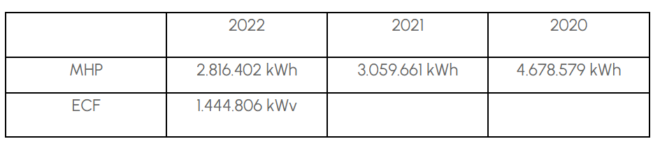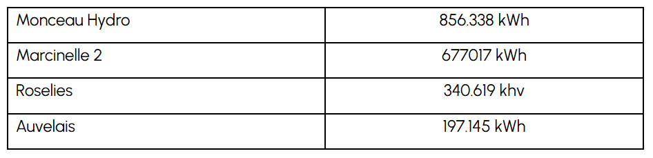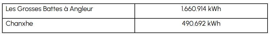 La progression est donc énorme malgré des conditions météo qui ne correspondent pas tout à fait à nos prévisions, basées sur les statistiques des années antérieures. En éolien, l’année 2021 fut peu venteuse, la tendance descendante semble se poursuivre au cours du premier trimestre. La seule différence est que nous disposons désormais de 3 éoliennes avec l’arrivée de l’Eolienne Citoyenne de Fauvillers (ECF). Au total, les éoliennes ont produit 4.261.208 kWh qui se répartissent comme suit entre les Moulins du Haut Pays (MHP) et l’Eolienne Citoyenne de Fauvillers (ECF) :
