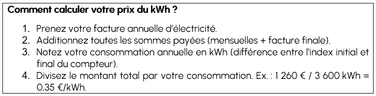 3.     Multipliez par la durée d’utilisation et le prix du kWh :