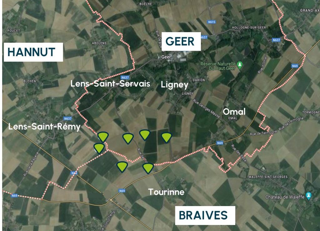 Le projet développé par la coopérative HesbEnergie, en partenariat avec Eneco et Emissions Zéro. Il est composé de 7 éoliennes, entre 3 et 8 MW, situées entre les villages Lens-St Servais, Geer, Ligney, et les routes N64 et N69, sur les territoires communaux de Geer, Hannut et Braives,